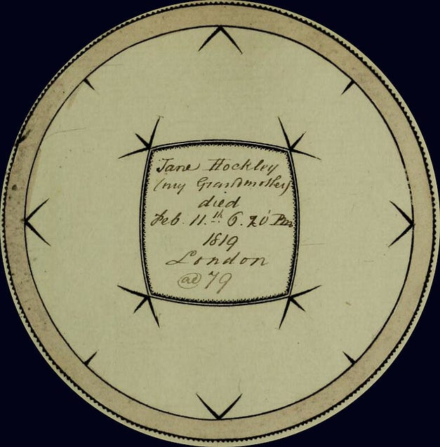 Jenny Hockley of Luke Street, 82 years old, buried on February 21, 1819